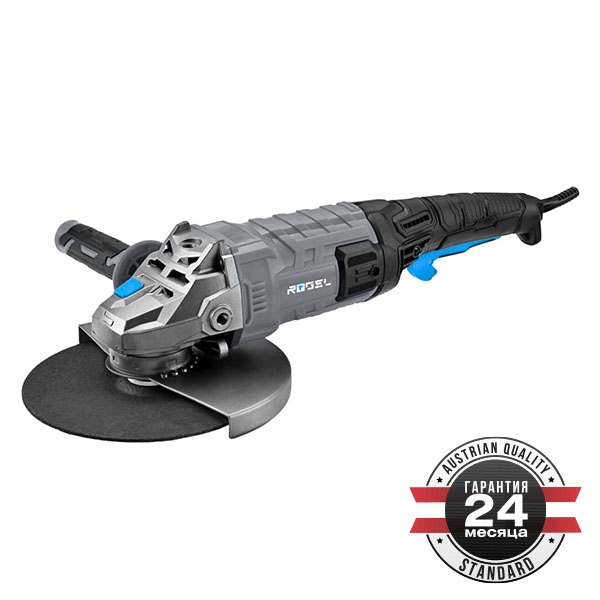 ROGEL AGR 230-2200FS, Угловая шлифовальная машина ROGEL, 2200 Вт, 6500 об/мин, повор. рукоять, быстрорег. кожух, плав. пуск, диск 230 мм