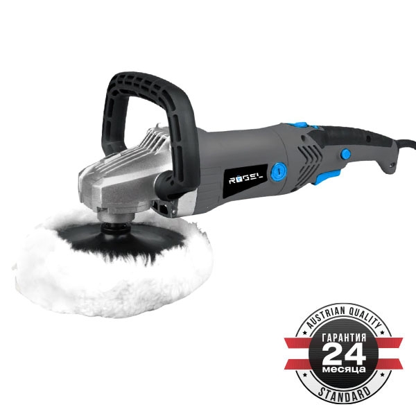 ROGEL PMR 180-1400, Полировальная шлифмашина ROGEL, 1400 Вт, 600-3000 об/мин, пов. рукоятка, бронир. ротор, диск 180 мм