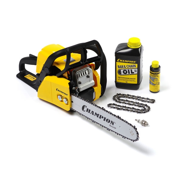 CHAMPION A232-14, Бензиновая цепная пила, 1,5 кВт, 31,8 см3, 14"-3/8-1,3-50E + подарок: масло для цепи 1л; свеча; цепь; масло для 2-тактных двигателей 0,1л.