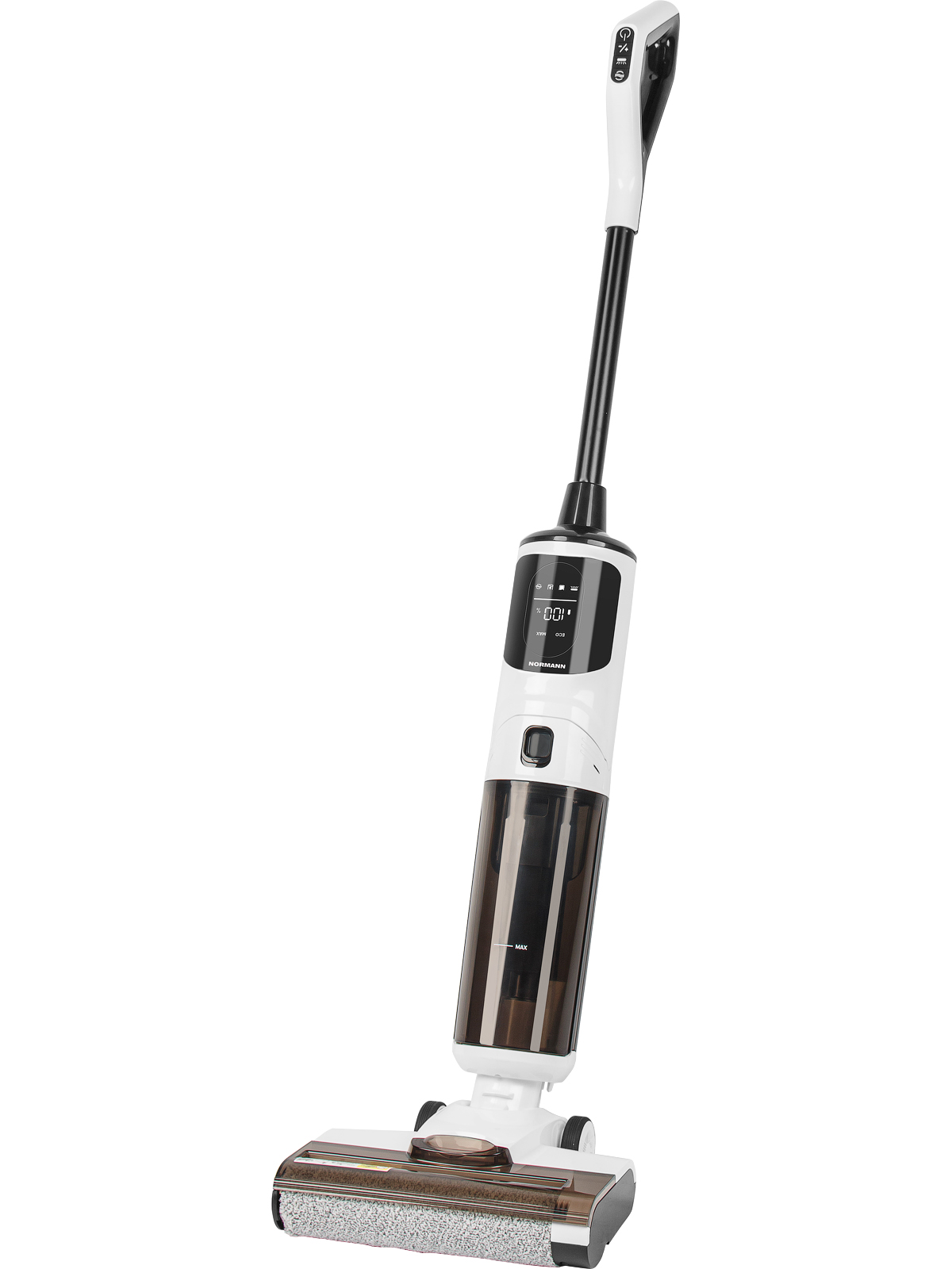 BLDC-мотор,Объем резервуара для чистой воды: 0,485 л,Объем резервуара для грязной воды: 0,4 л,Мощность всасывания: >14 000 Па,Питание: аккумуляторная батарея Li-ion 2600 мА*ч, 25,9 В,Мощность: 170 Вт,Уровень шума: 77 дБ.Cухая и влажная уборка, Беспроводной, С функцией самоочистки, Голосовой помощник на русском и английском языках, Два режима работы стандартный(ECO) и турбо(MAX), Электролиз воды для уничтожения бактерий.Вертикальный беспроводной пылесос совмещает сухую и влажную уборку, обеспечивая качественный уход за разными поверхностями. Модель оснащена функцией самоочистки и удобной станцией, которая упрощает обслуживание устройства. Электролиз воды помогает эффективно бороться с бактериями. Голосовой помощник на русском и английском языках упрощает управление и контроль процесса уборки. Два режима - стандартный и турбо - позволяют адаптировать работу к уровню загрязнений.Пылесос со встроенным аккумулятором, с установленным фильтром, двумя резервуарами (для чистой и грязной воды) и роликом электрической турбощетки - 1 шт.,Съемная ручка - 1 шт.,Щетка для очистки - 1 шт.,Сетевой адаптер 100-240 В~ 50/60 Гц - 1 шт.,Зарядная станция с функцией самоочистки ролика электрической турбощетки - 1 шт.,Руководство по эксплуатации - 1 шт.